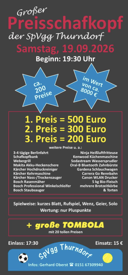 Zudem viele großartige Sachpreise zu gewinnen und für das leibliche Wohl ist bestens gesorgt.