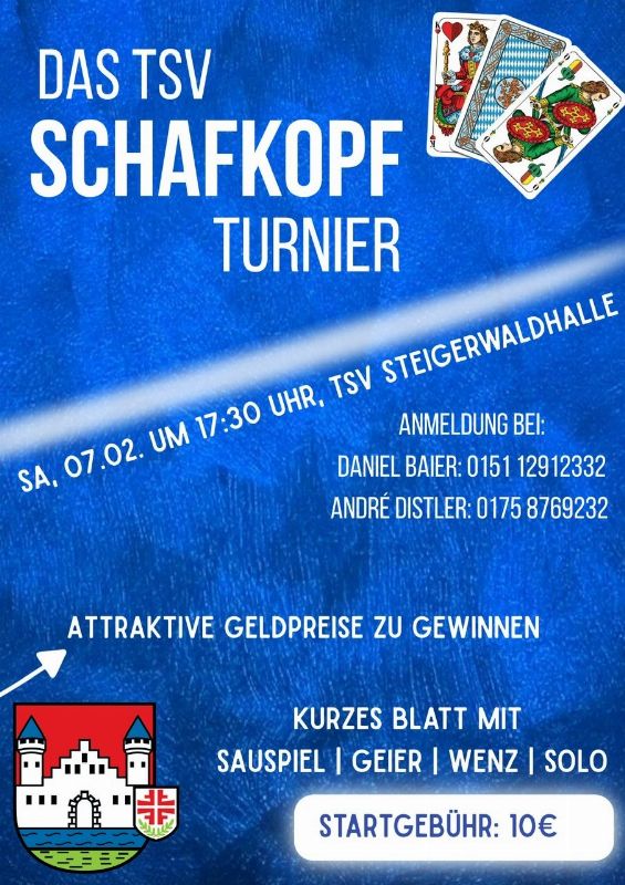 Startgebühr: 10,00 € Für das leibliche Wohl ist bestens gesorgt! 0171/ 7766440 Frank Schultheiß kurzes Blatt, mit Solo, Wenz und Geier Plus Punkte Web: http://www.ssv-ober-unterlangenstadt.de